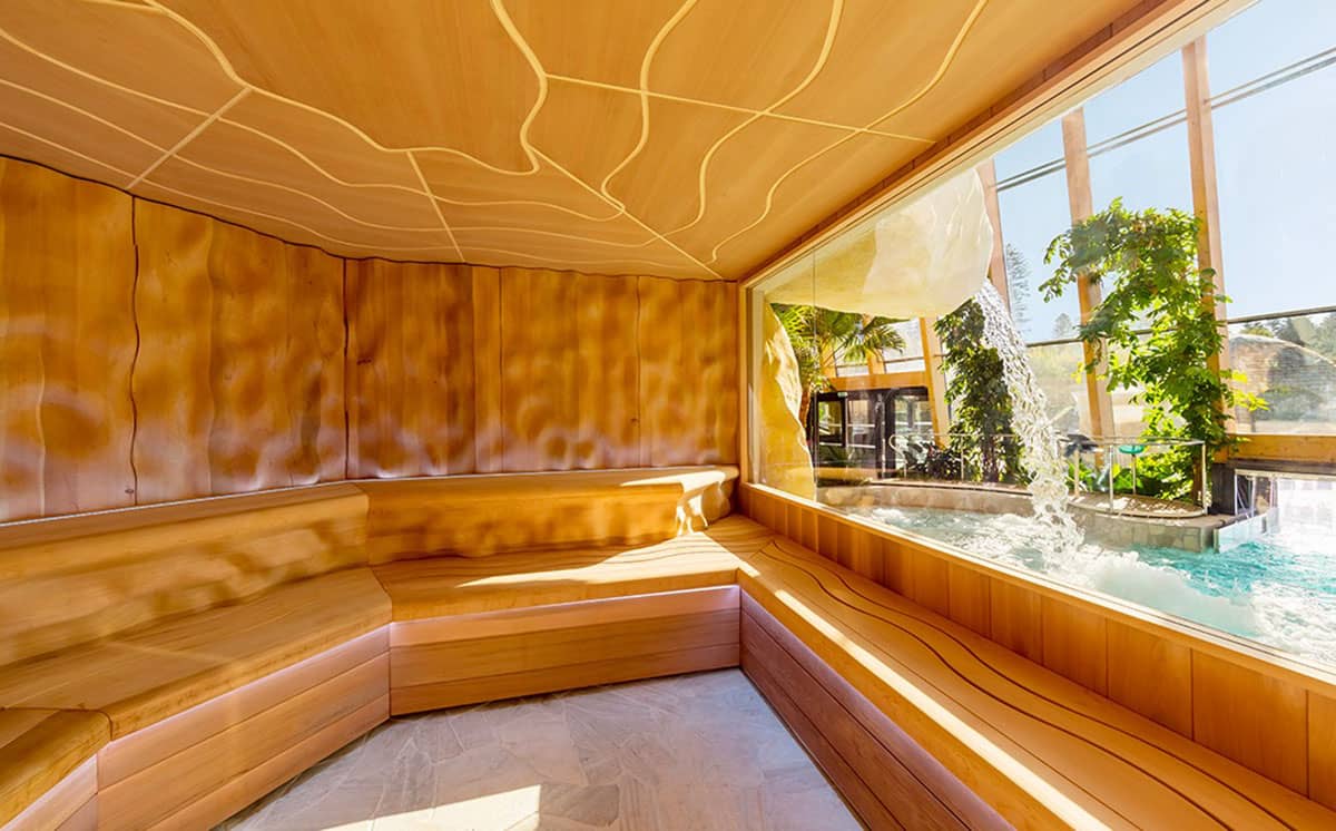 - Erlebnis-douches, relaxzones binnen en buiten, en een zoutcabine.